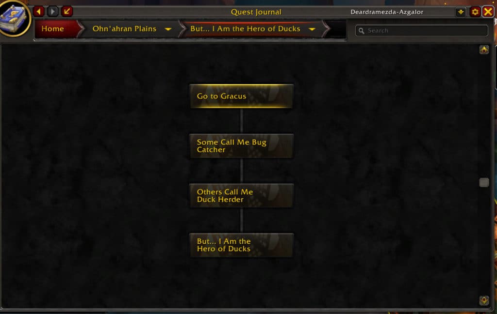 BtWQuest describes itself on Curse Forge as "A quest journal that shows your progress within quest chains in a simple and easy to follow manner, showing not only your current quest but also all the future quests in the line, how they all connect and other quest lines they lead to or require.". However, the feature that's truly neat about this addon comes in the form of laying out quest chains in one place. No more must you run around the map aimlessly or try and follow inane WoWHead comment threads while trying to figure out where to quest next.