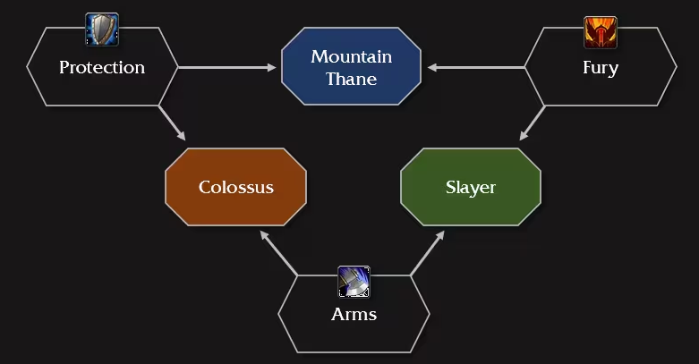 So, in the case of a Fury Warrior for example, she’ll be able to pick either the new Slayer or Mountain Thane spec, but not Colossus. Meanwhile, Protection Warriors can take Mountain Thane or Colossus, but not Slayer.