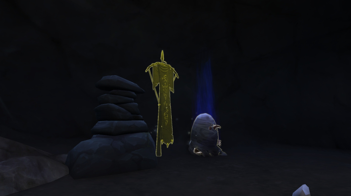 The final Aged Marker is near the burial site, by the entrance to the Deadsnare Caverns in the Primordial Vale. As with other Secrets of Azeroth quests, you’ll use the Torch of Pyyreth to clear spider web markers off the final objective.