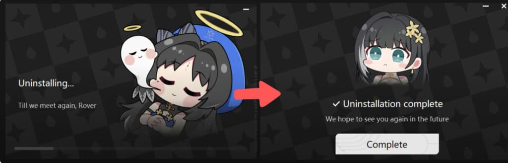 A prompt with Yangyang will ask - "Do you wish to remove "Wuthering Waves" and all its components?" Click "Uninstall".