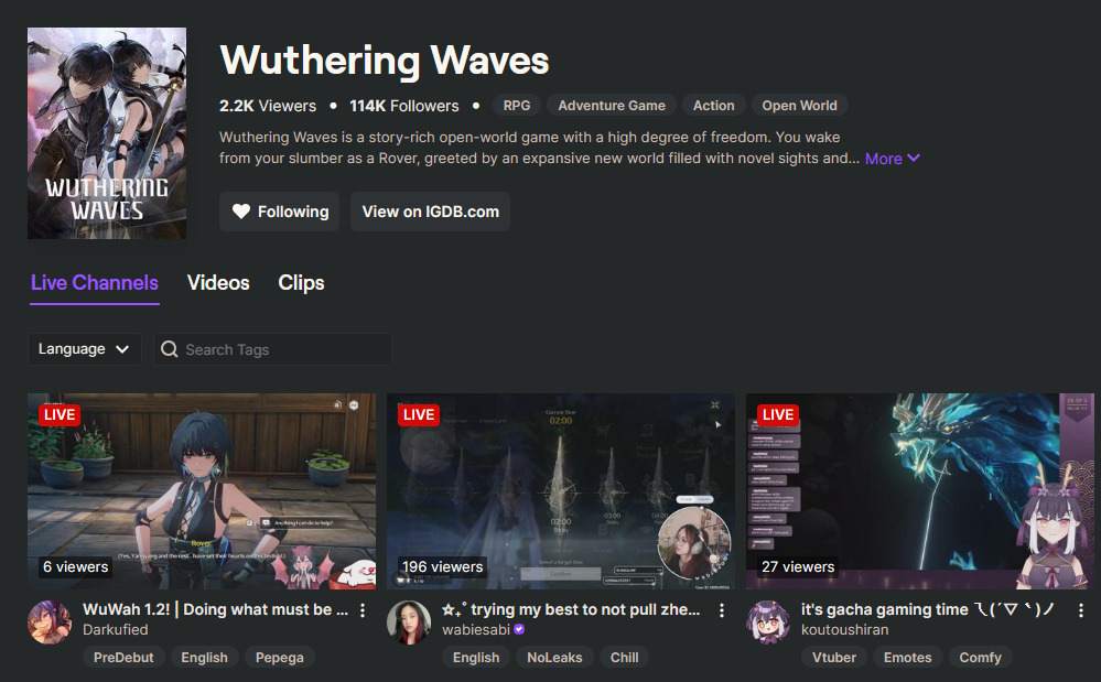 Next, browse for Wuthering Waves livestreams on Twitch and pick some to spectate! The longer you watch and support Wuthering Waves streams, the more rewards you will get. After watching streams, you can check your inventory to see your earned rewards. The rewards you obtain will be sent to your in-game “Mail” within 24 hours.