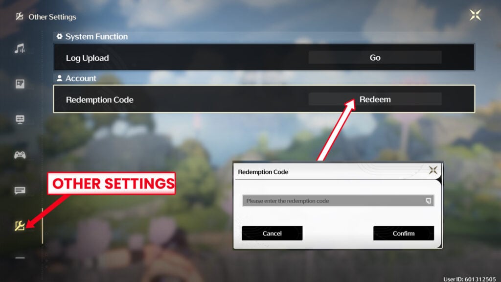 - Choose Other Settings (from the left side) then select Redeem and enter your code