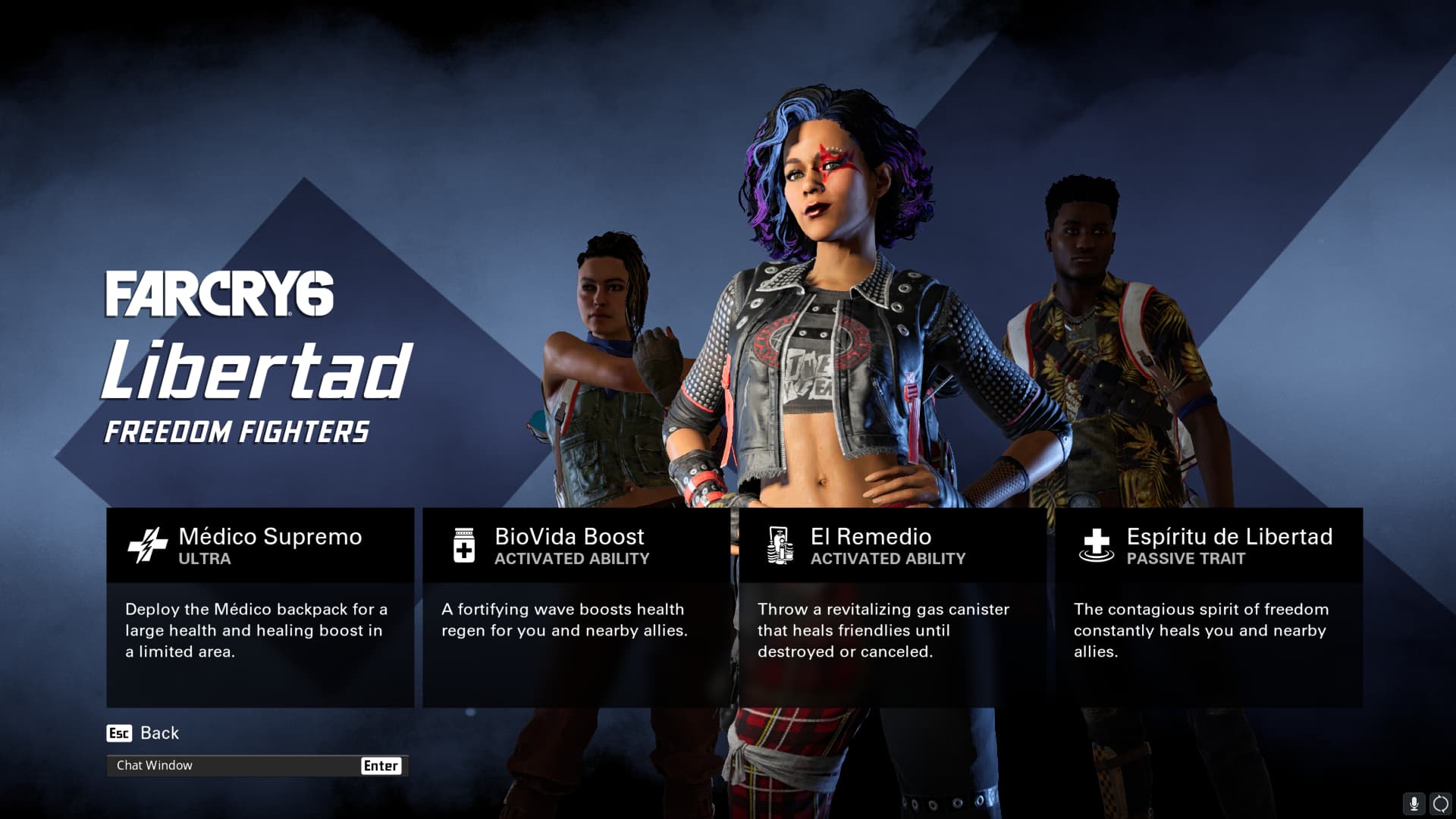 - Libertad: Healing is the name of the game with Libertad. Quicker healing comes from the passive trait, with even faster health regen from the BioVida Boost. El Remedio and Medico Supremo gives an area of effect heal. Basically, you can keep yourself alive longer to dish out more damage with the ACR.