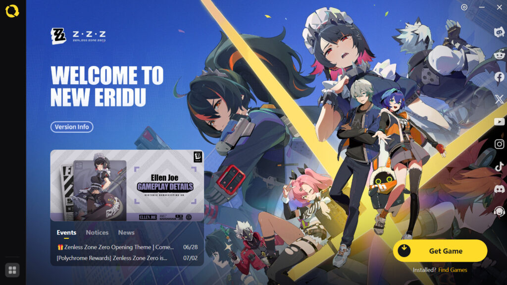 Once your HoYoPlay is launched, you’ll see a Zenless Zone Zero banner greeting you with a “Welcome to New Eridu”. You can find a lot of information on the app regarding the game such as ongoing Events, Notices, and News from the developers.