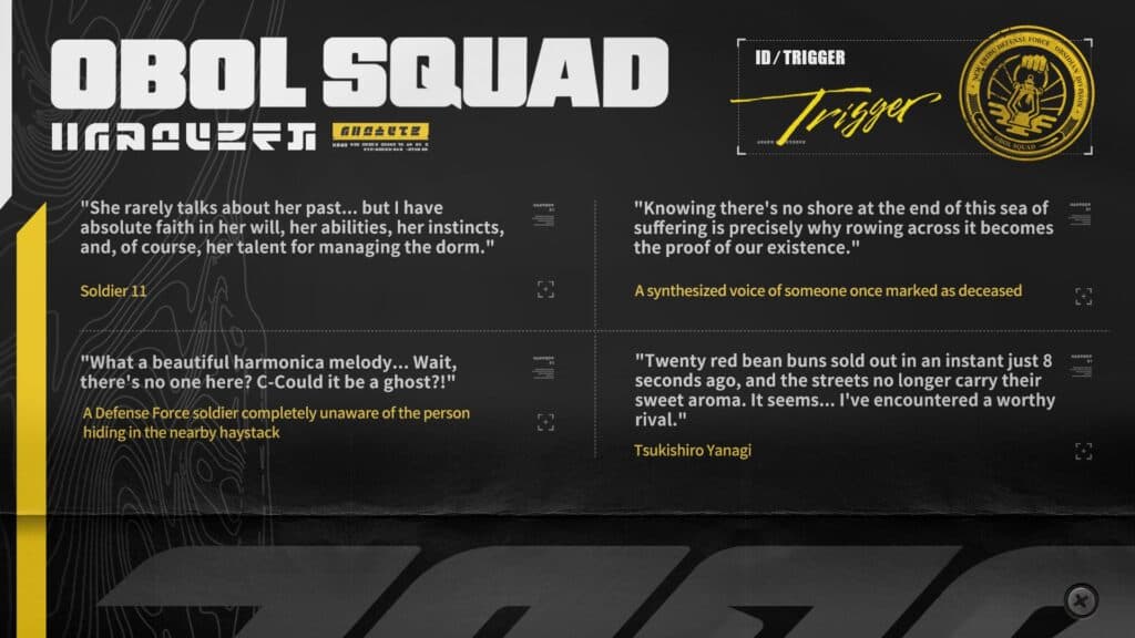 Trigger's addition as a playable character, on top of Anby's Silver Soldier version, may mean that we'll get to learn more about the enigmatic Obol Squad. It seems that Trigger also has extra responsibilities in the faction, if Soldier 11's quote is anything to go by.