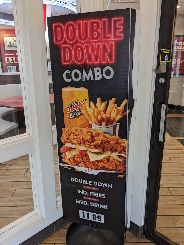 And yet, it would come back and in full force. Initially as part of an April Fool’s joke in 2010, the Double Down went on sale, much to the horror and delight of bloggers, YouTubers, and the general consumer. To quote The Consumerist: “The Original Recipe sandwich will set you back about 540 calories, 32g of fat and 1380mg of sodium. The not-as-bad-for-you Grilled Double Down totals 460 calories, 23g of fat and 1430mg of sodium.”