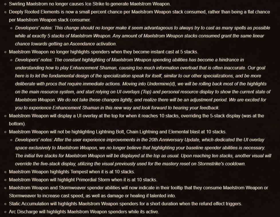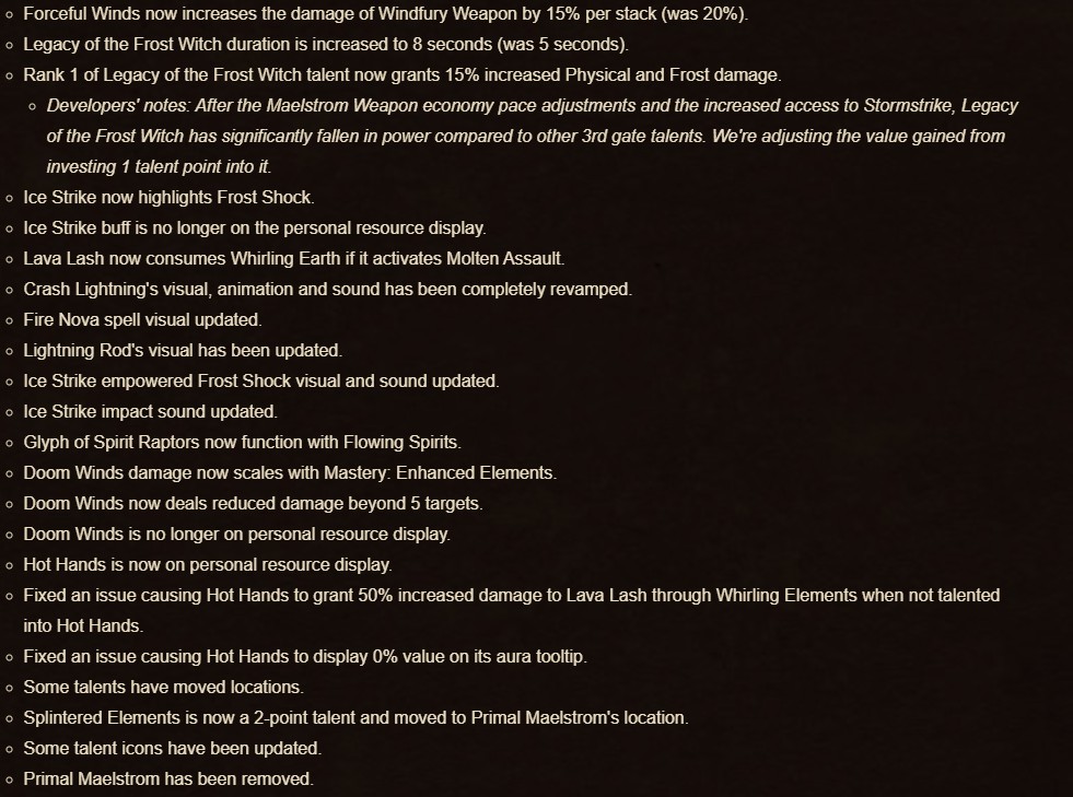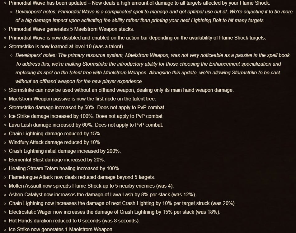 The patch notes for Shaman are extensive, to say the least, with what seems like pages upon pages of changes to read through. Simply scrolling through the changes feels like reading over a university thesis. What it boils down to is that Shaman should take a huge step up in the rankings – especially Enhancement. It is fairly difficult to sum it up more than that, but as can be seen below, Enhancement has some fantastic changes to, not only their skills but the user interface (UI), too.