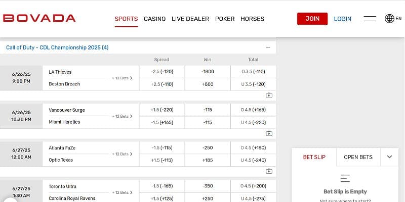 Whether you’re placing CoD bets from your phone mid-round or are locking in a parlay from your desktop, Bovada’s interface is responsive, easy to navigate, and built for speed. It’s not the prettiest thing you’ll see, but the odds update fast, and support is always within reach.